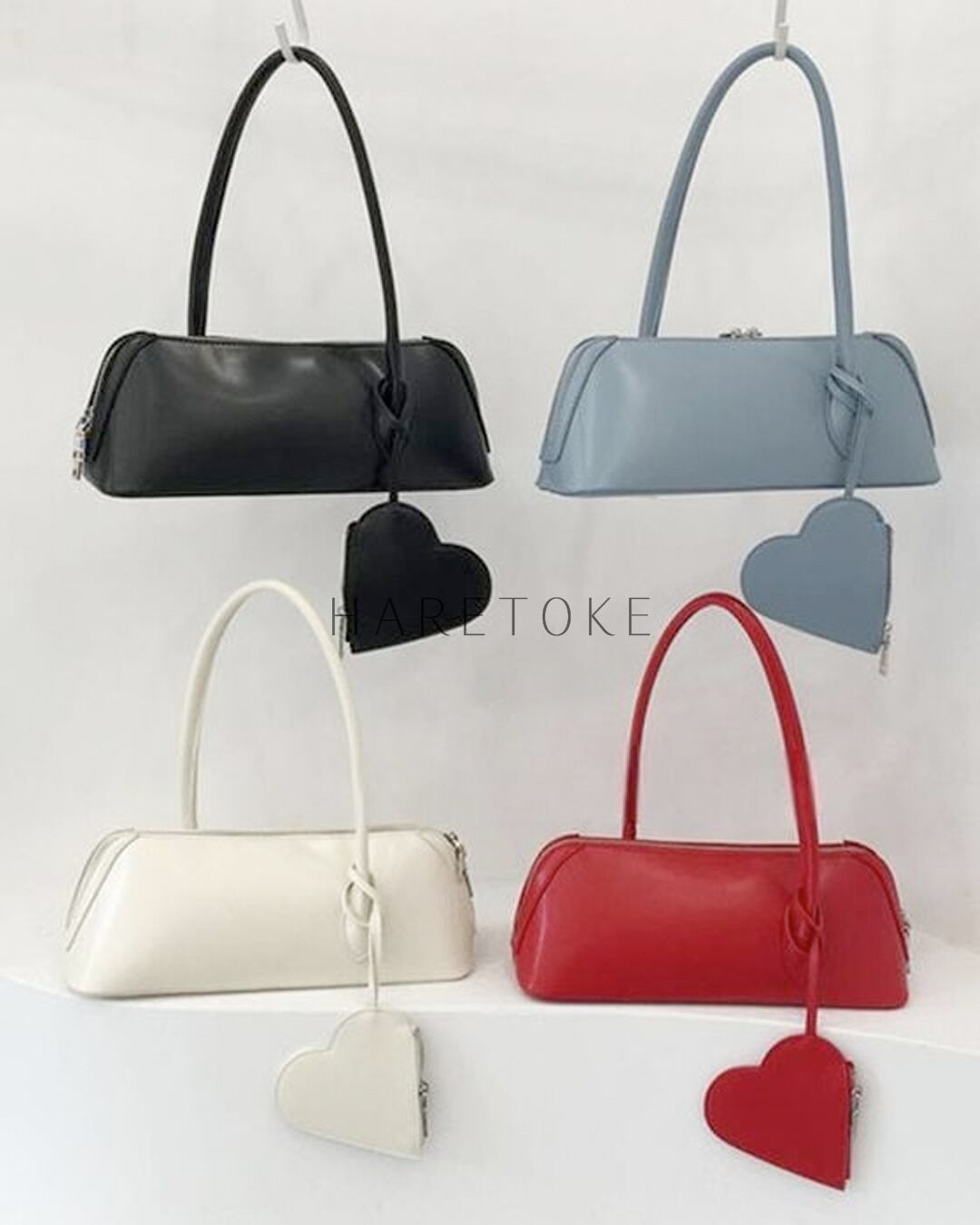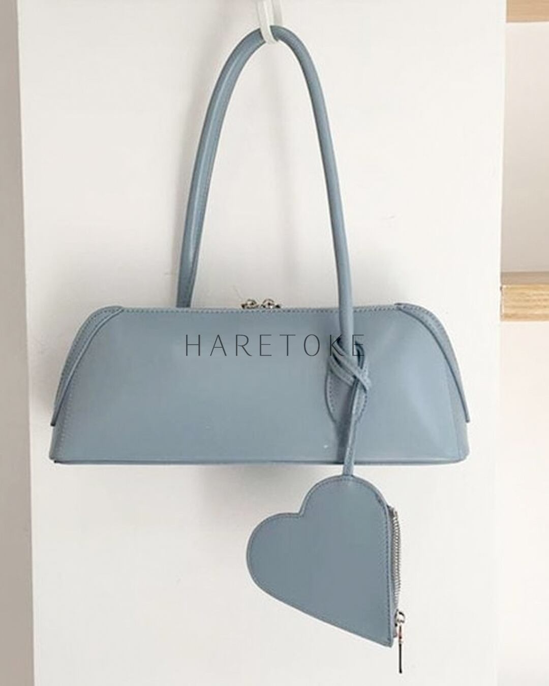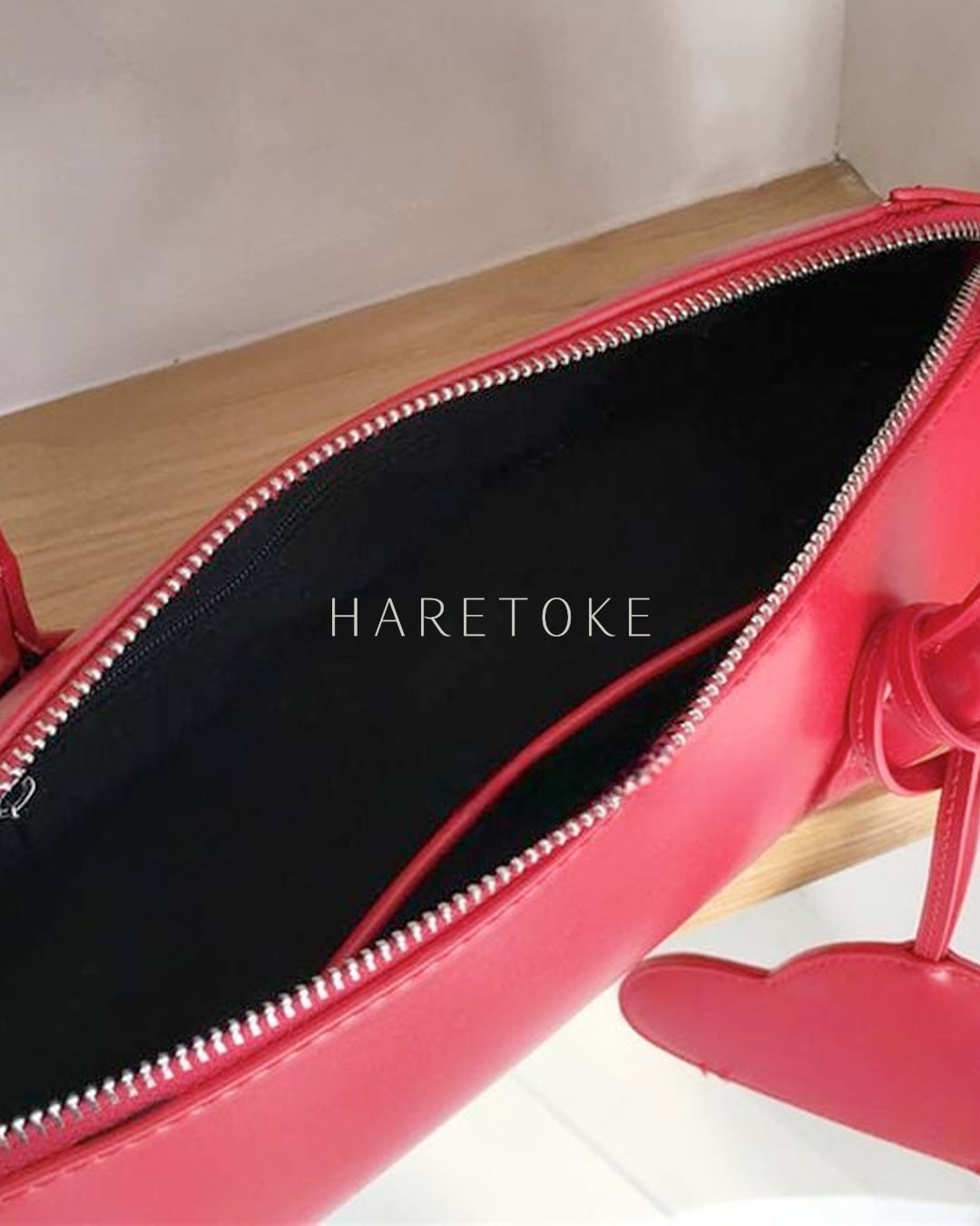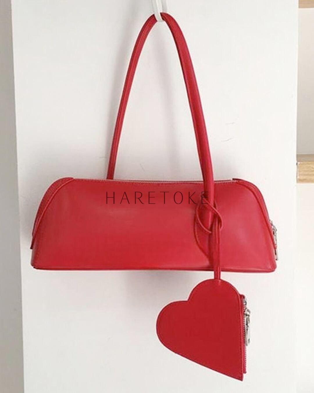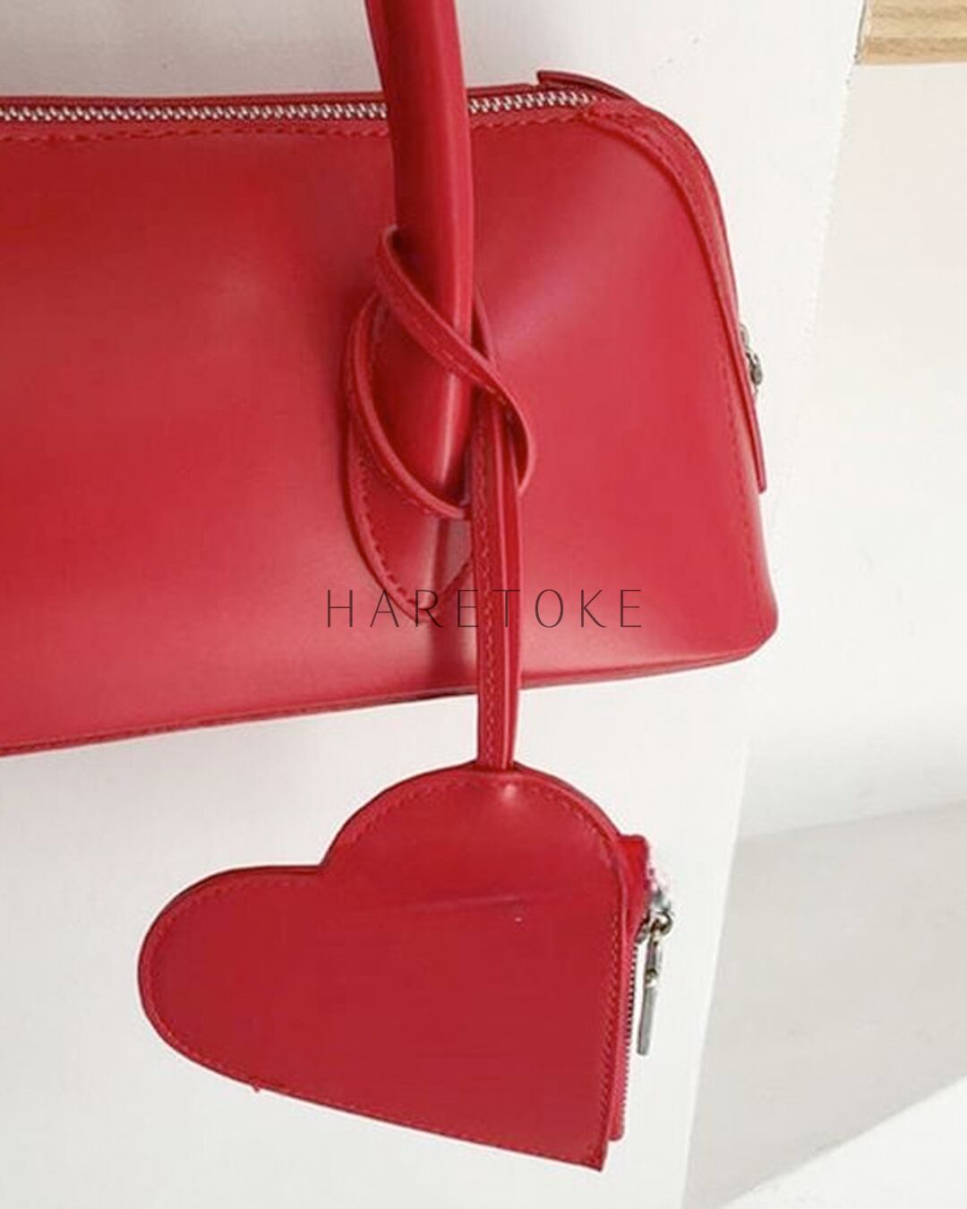 取り外し可能なハート型ポーチが遊び心を添える、ハートポーチ付きショルダーバッグ。