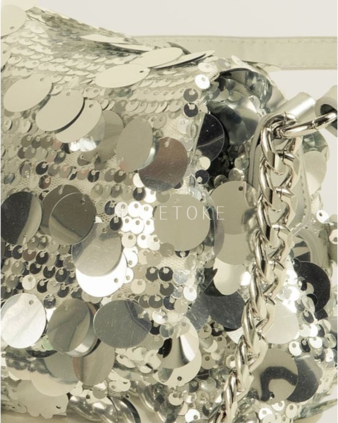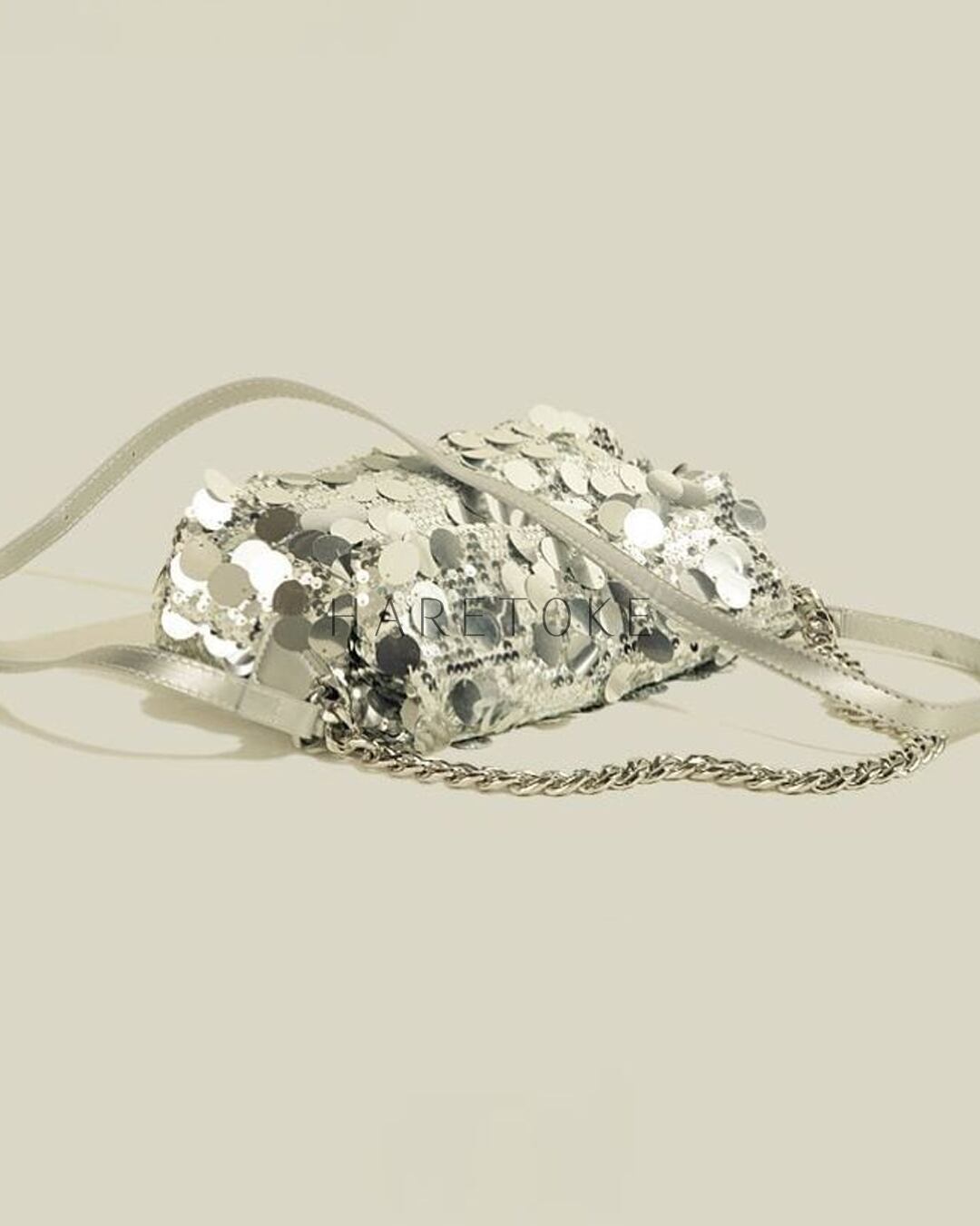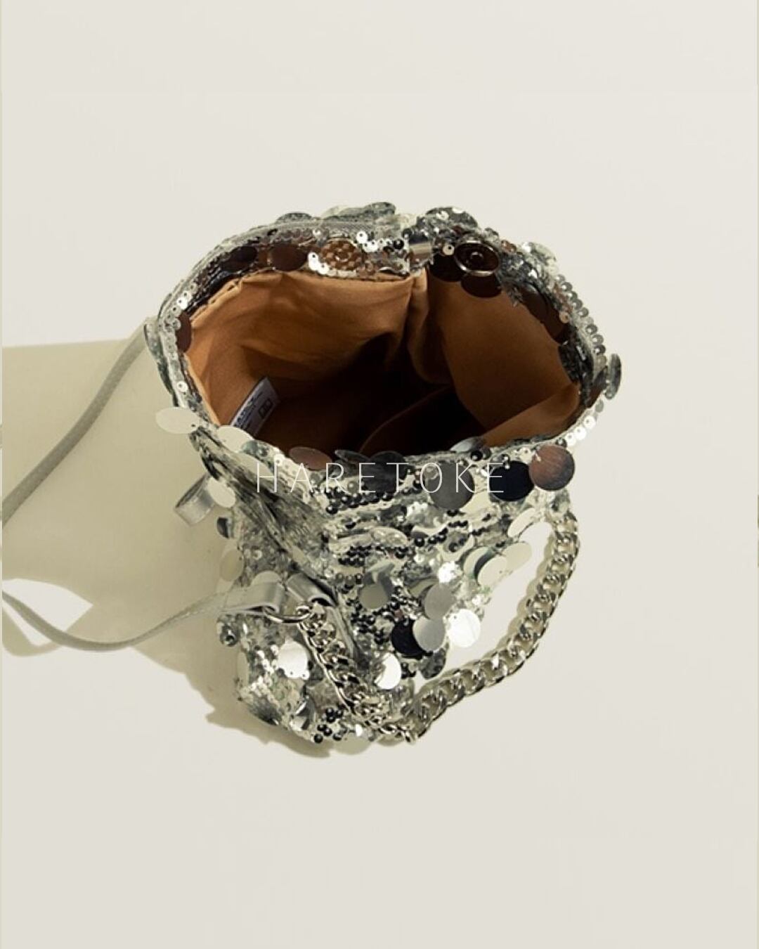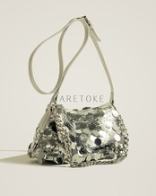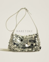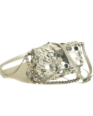 動きに合わせて表情を変えるスパンコールが存在感抜群で、コーディネートにインパクトをプラス。しっかりとマチのあるフォルムで収納力もあり、実用性とデザイン性を兼ね備えたひと品です。マニッシュなパンツスタイルからフェミニンな装いまで、さまざまなスタイリングに映えるアイテムです。