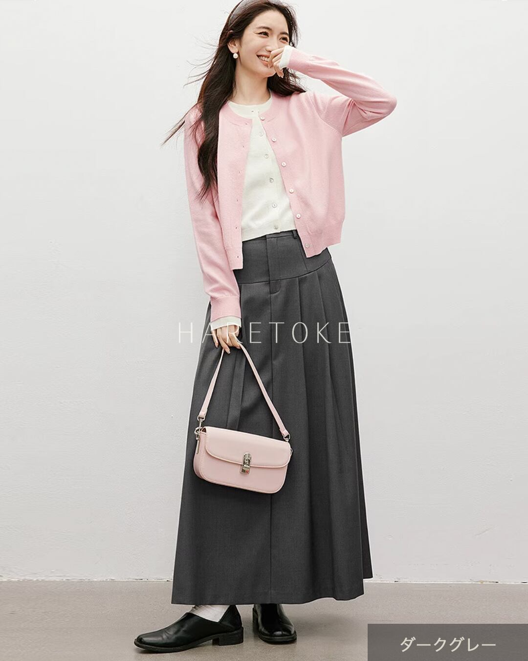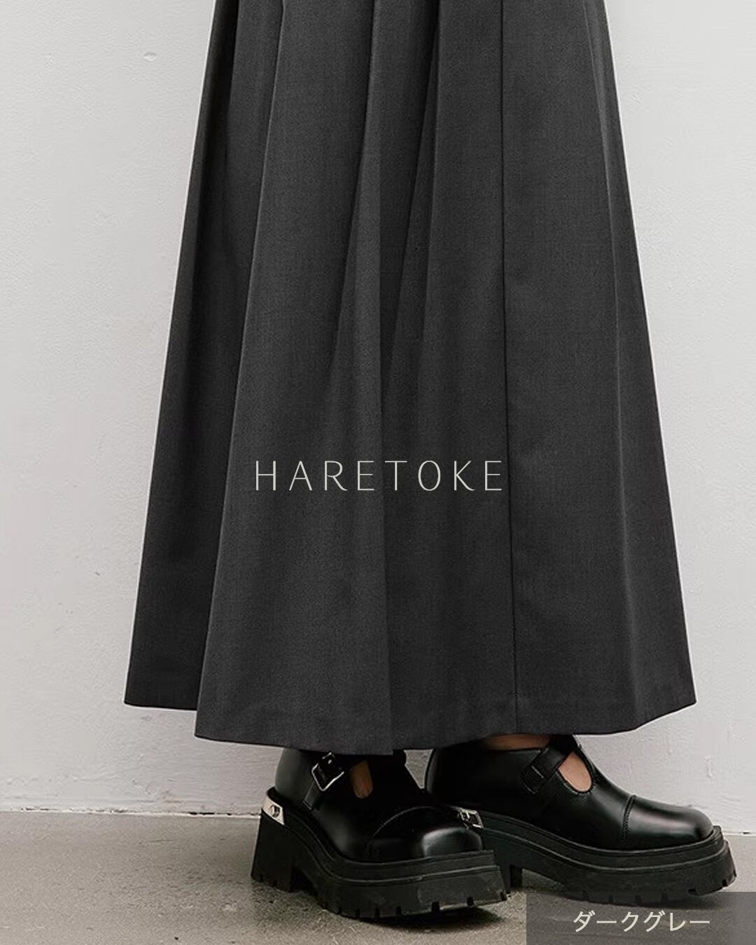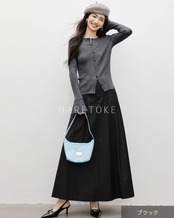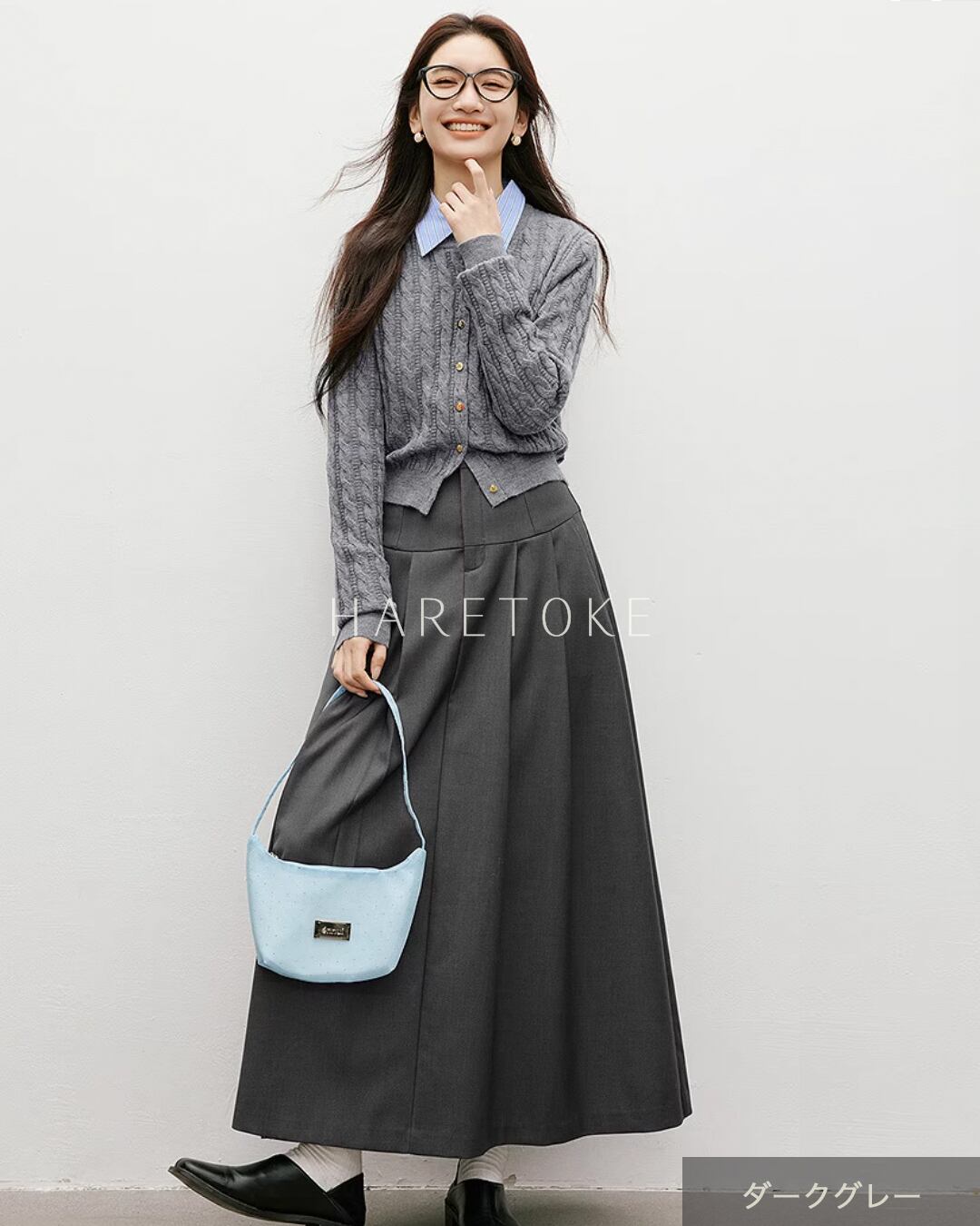 上品なツイル生地と大きめプリーツが印象的な、美ラインのプリーツロングスカート。