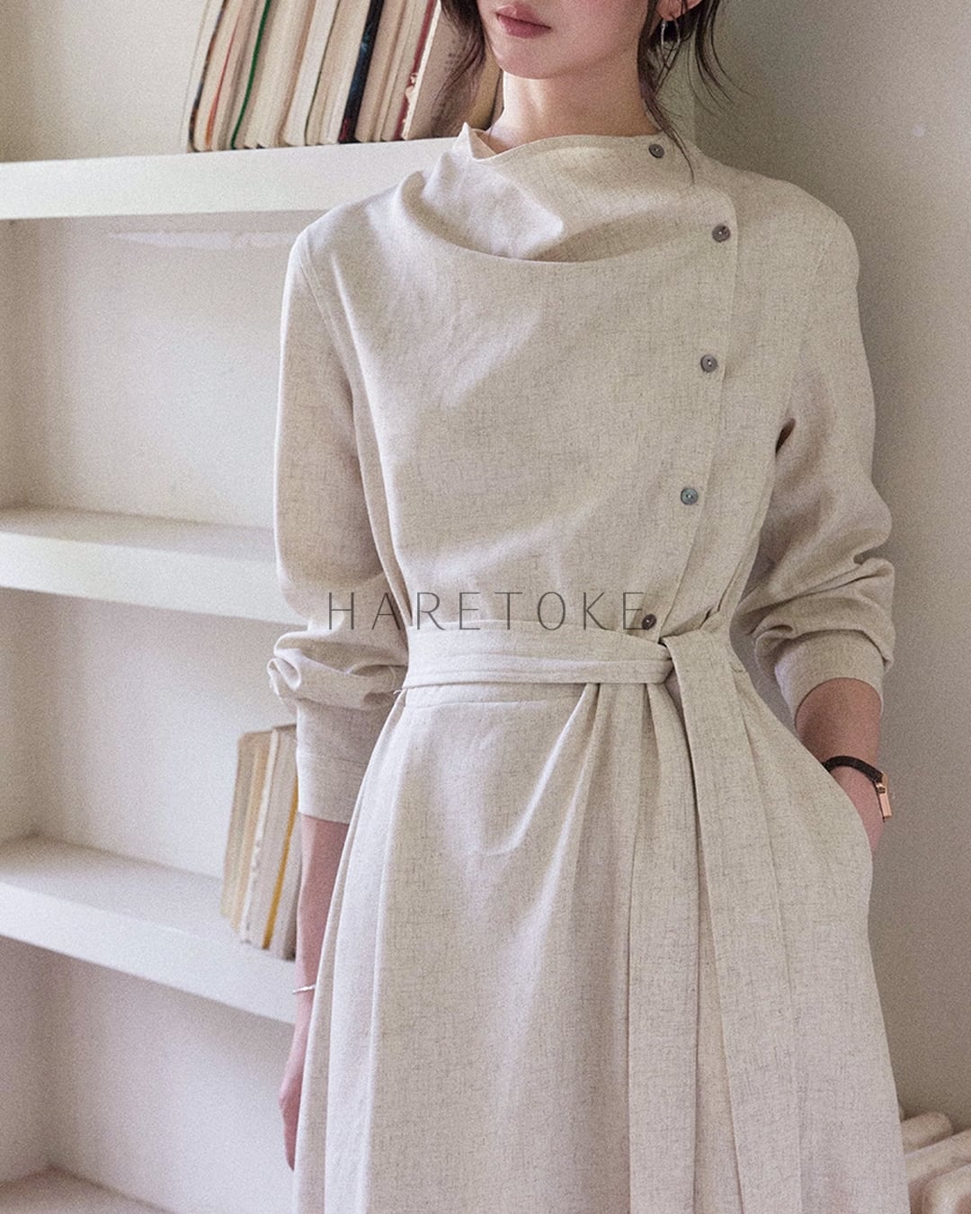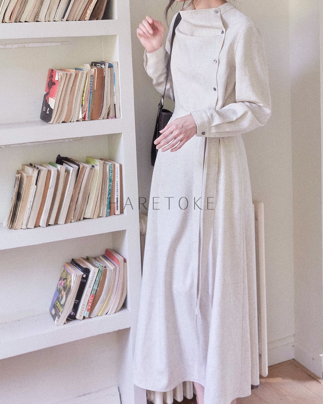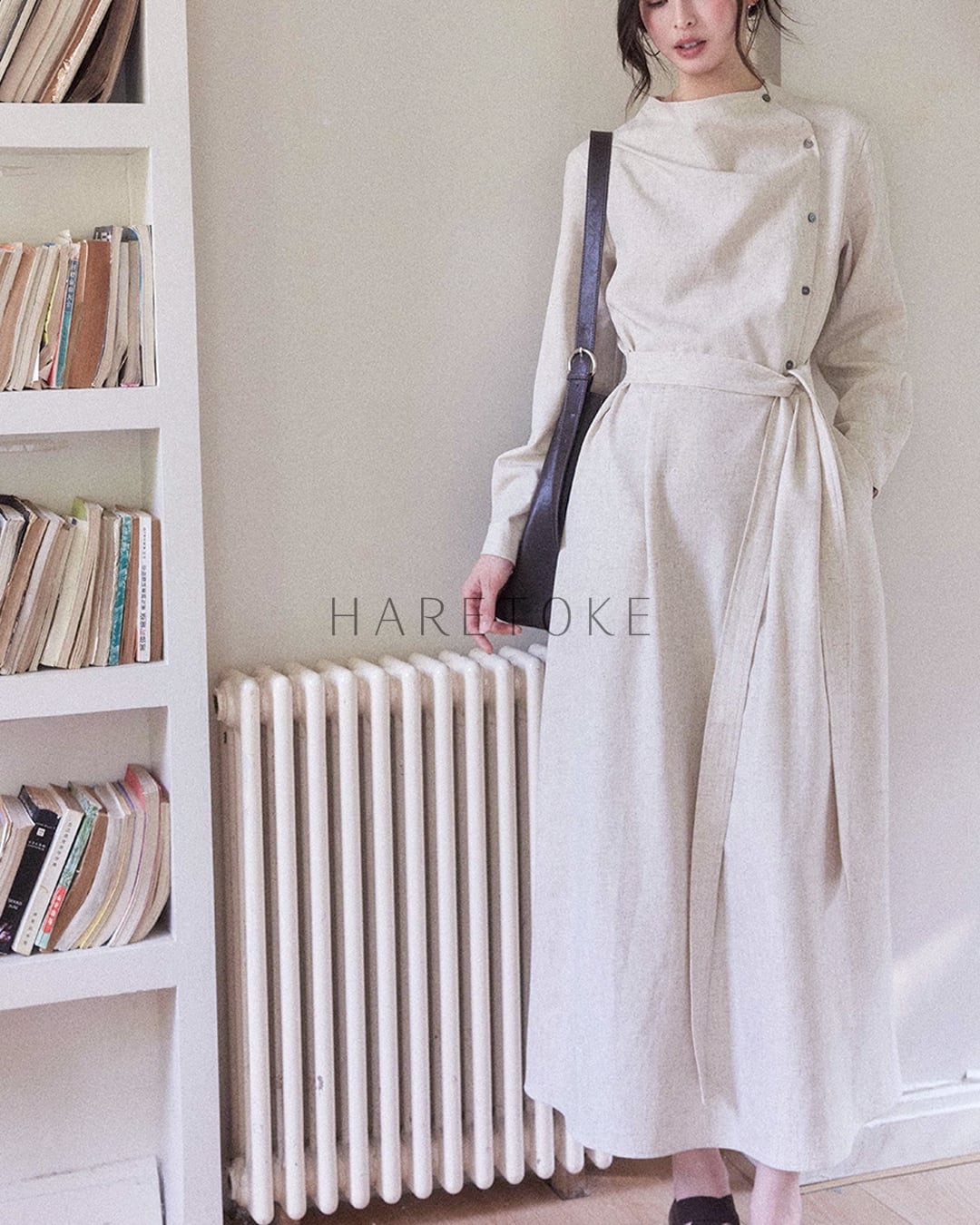 歩くたびに揺れる大きな裾は、軽やかで女性らしく、まるで気ままな詩を身にまとうような一着です。