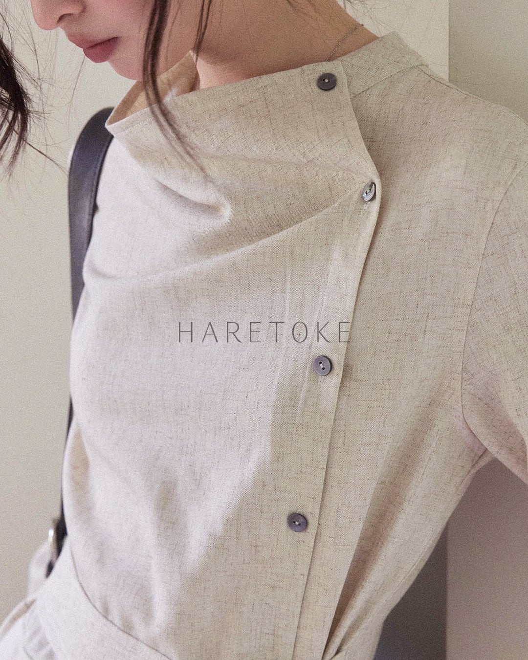 衿元にはさりげないデザインの工夫が施され、洗練された印象を漂わせます。