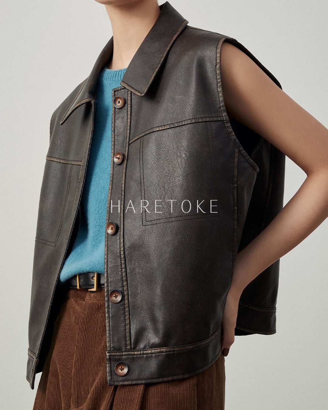 フェイクレザー・ノースリーブジャケット OT208080