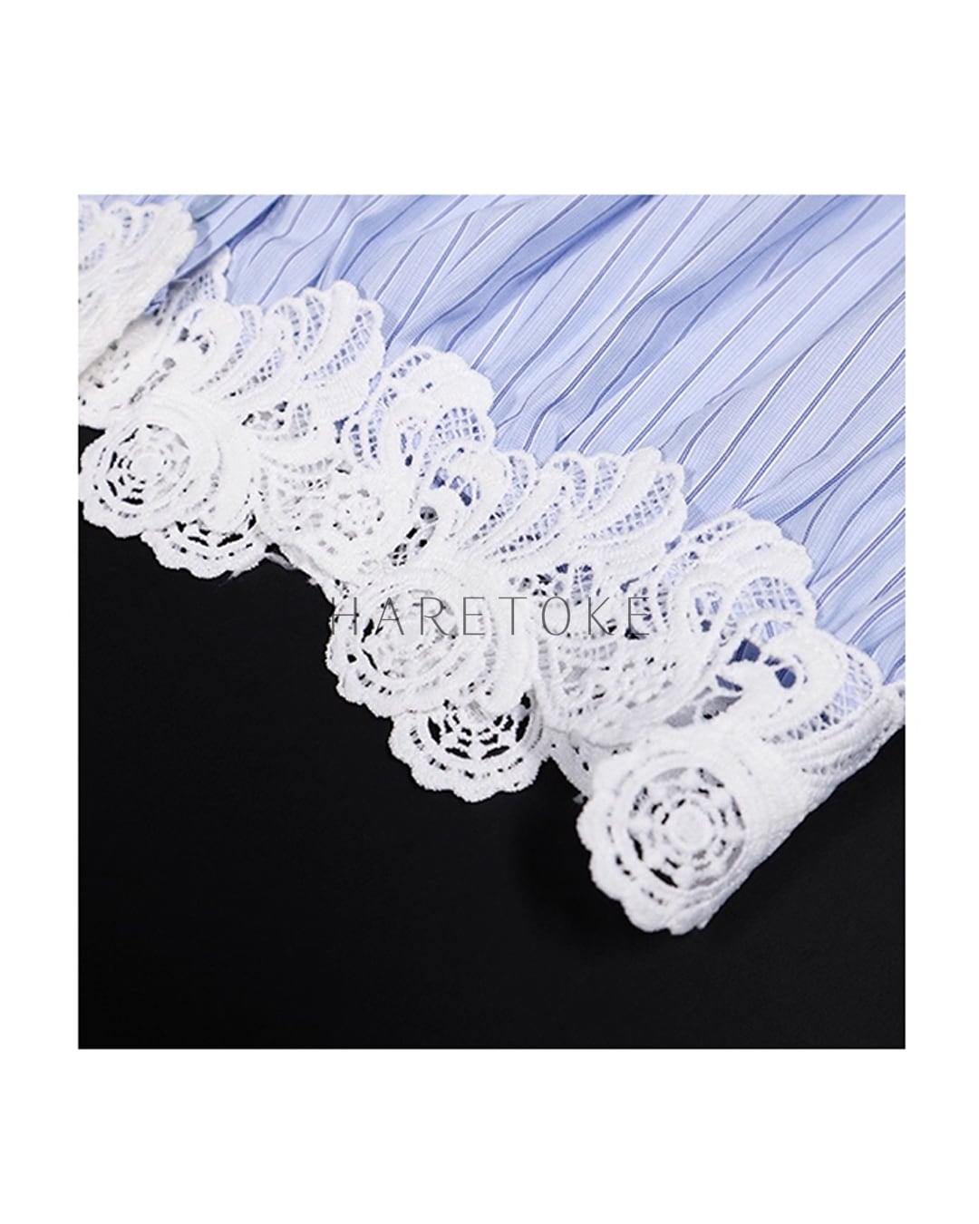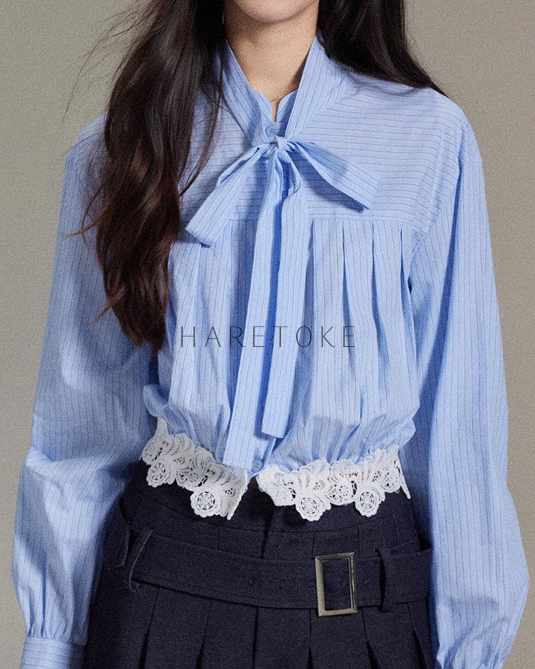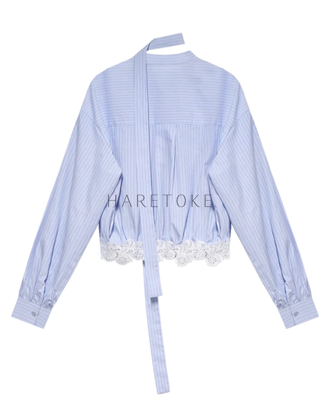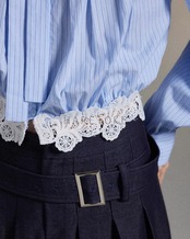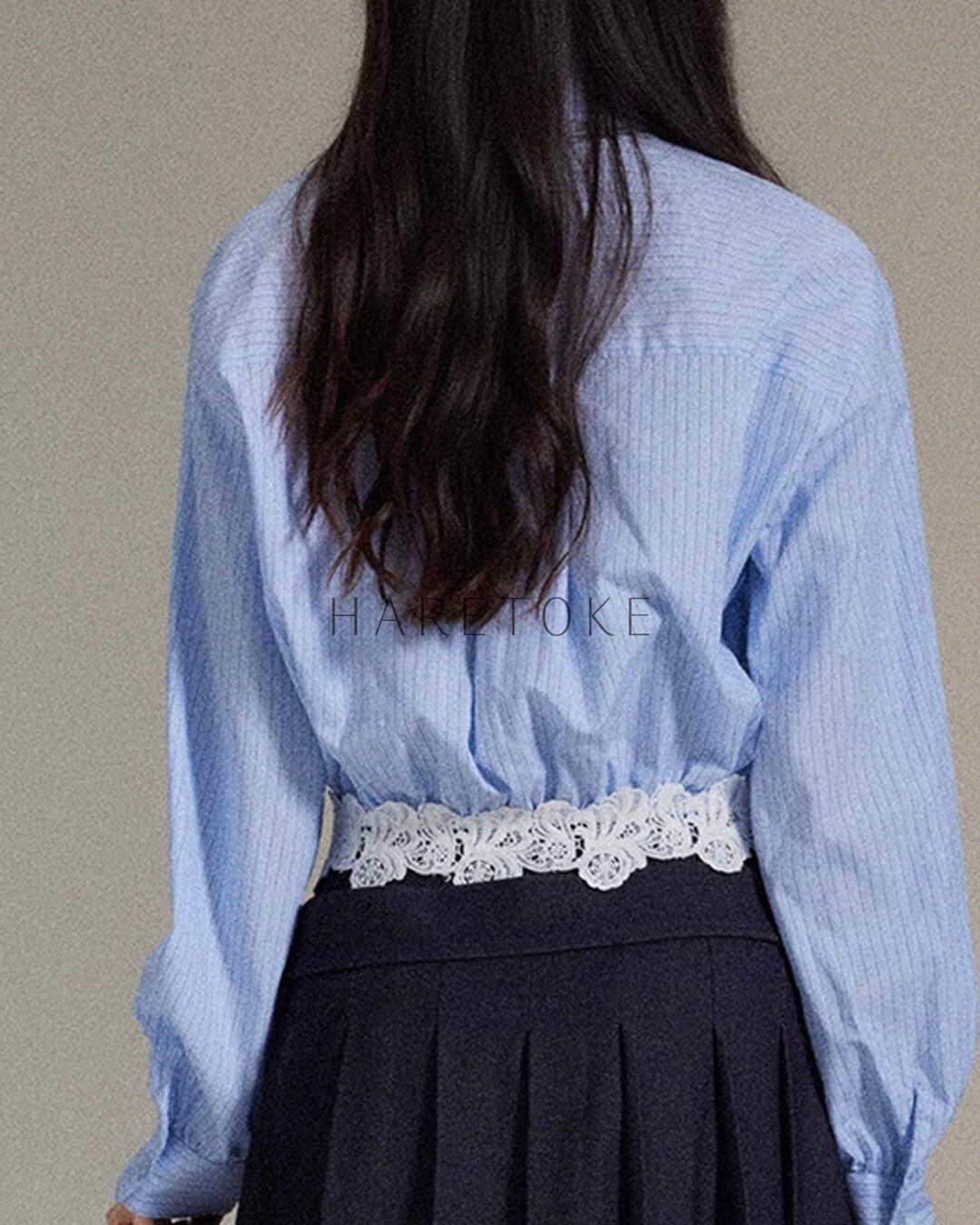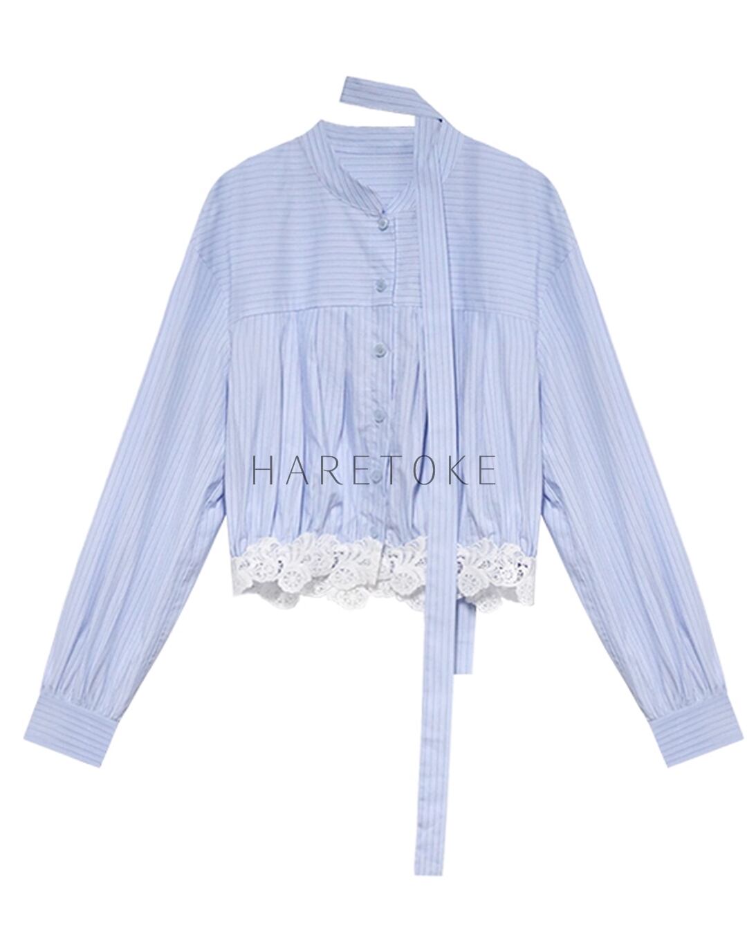 フレンチストライプ リボンブラウス(レース裾デザイン) BL348090