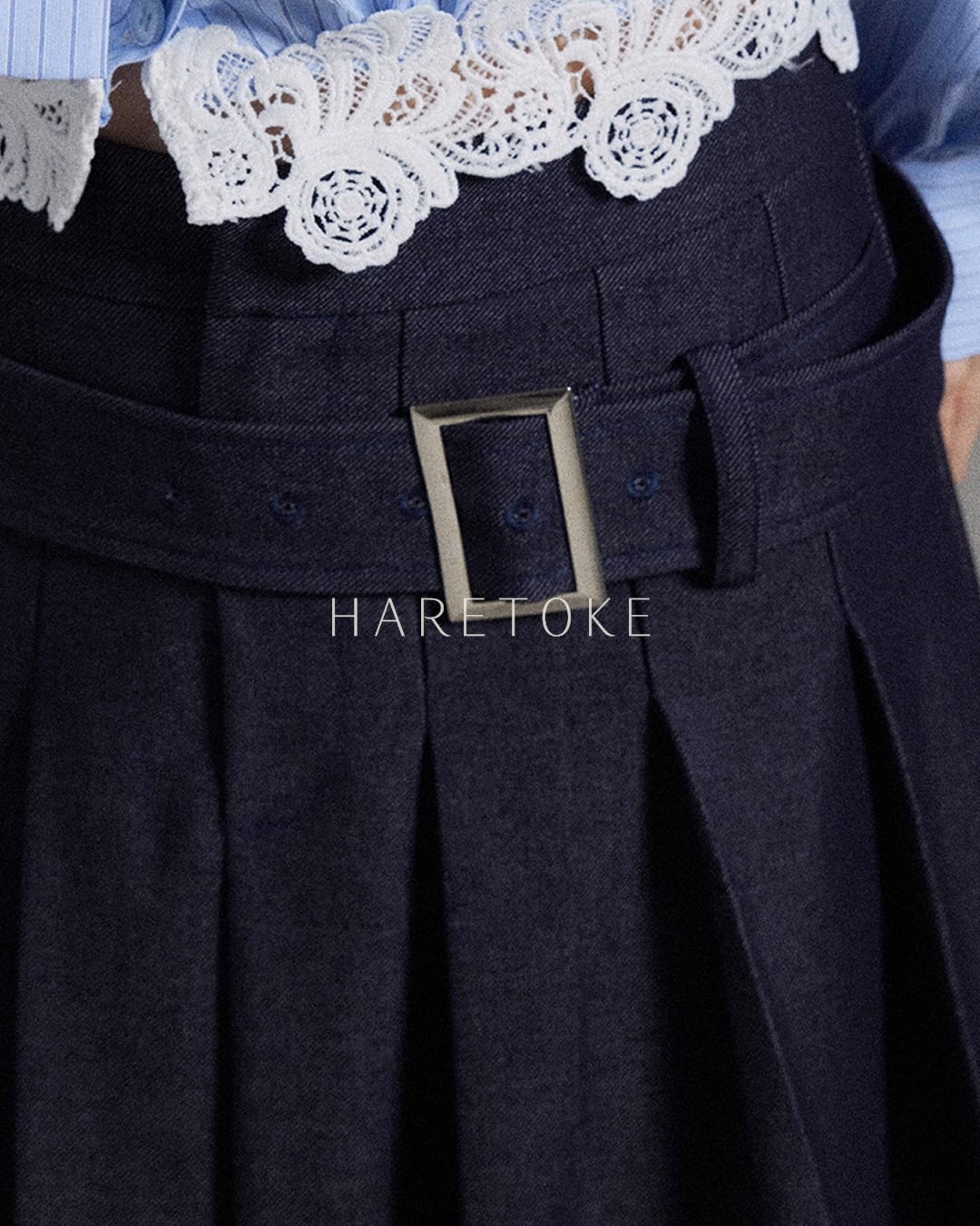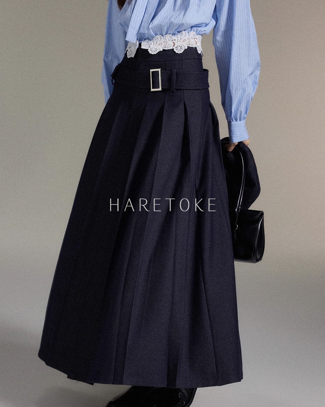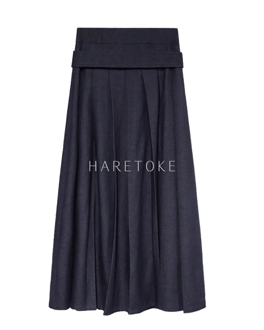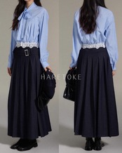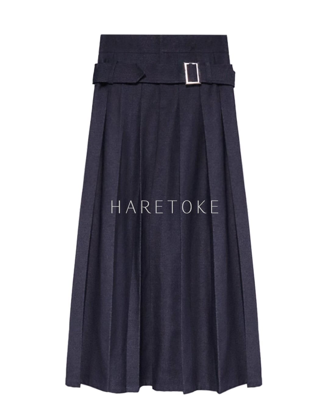 ゆったりとしたシルエットに、アカデミックな雰囲気を掛け合わせたデニム風プリーツスカート。