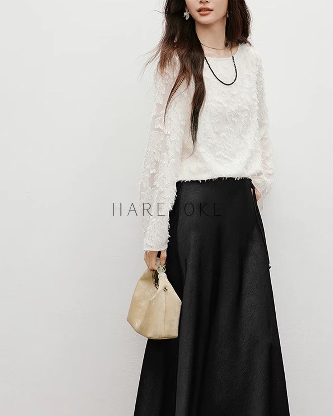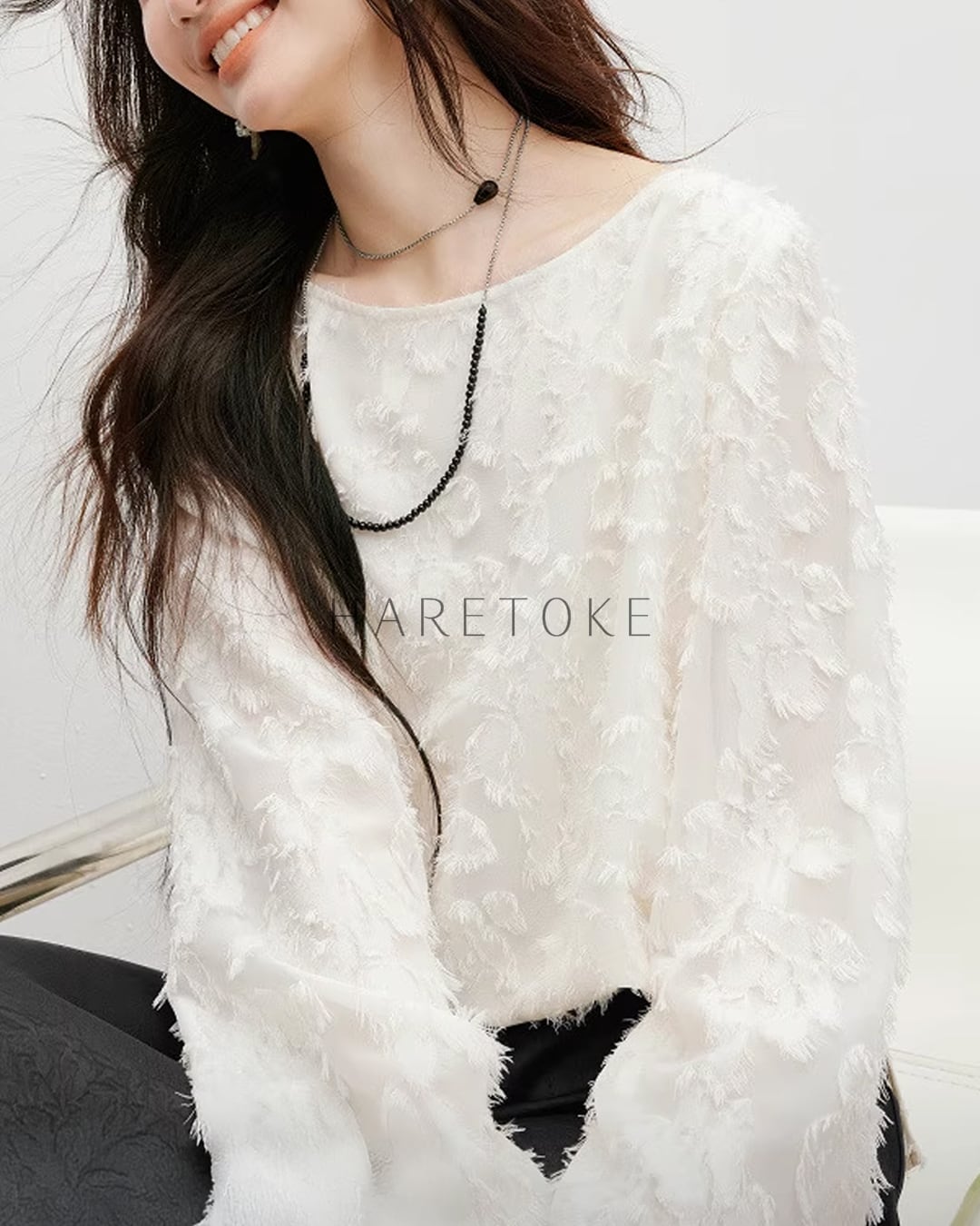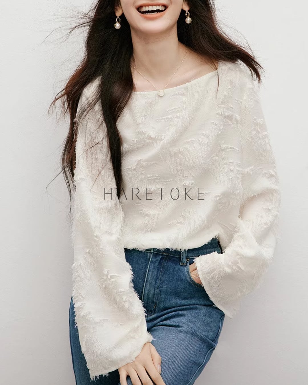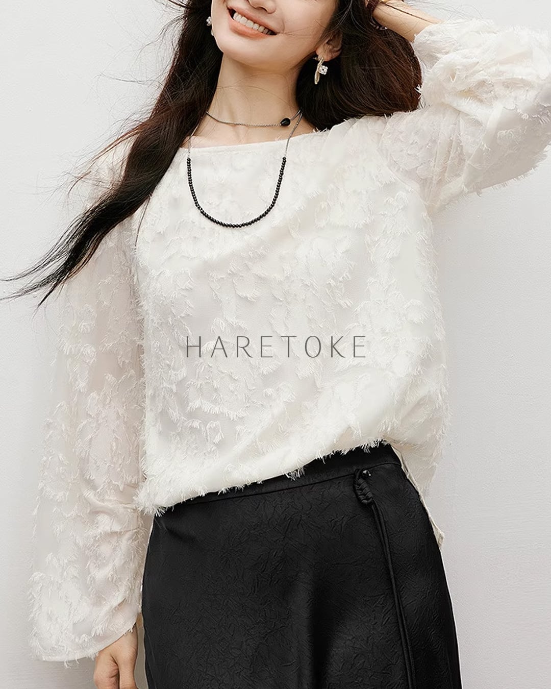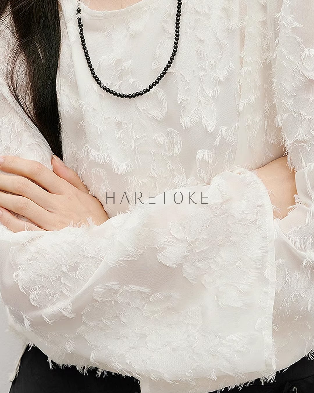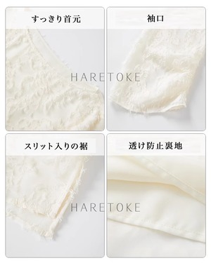 ふんわり広がるフレアスリーブは、ほんのりシースルーの透け感があり軽やかさと女性らしさを演出。