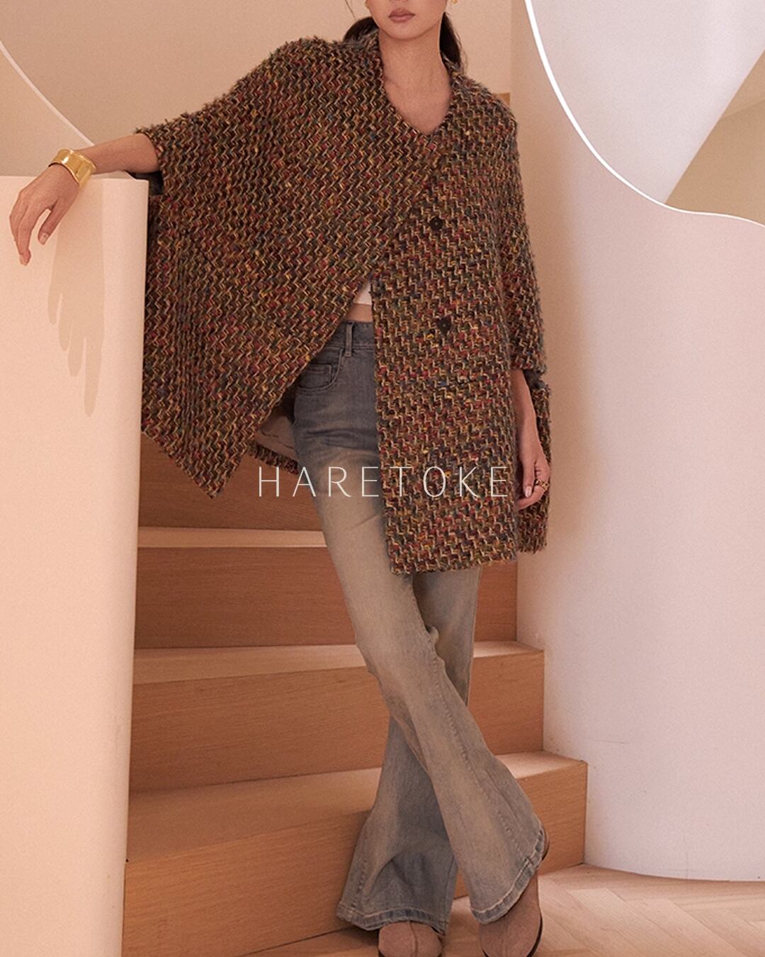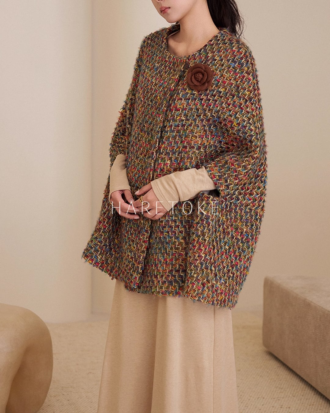 オーバーサイズのシルエットはカーディガン感覚で気軽に羽織れるのも魅力。