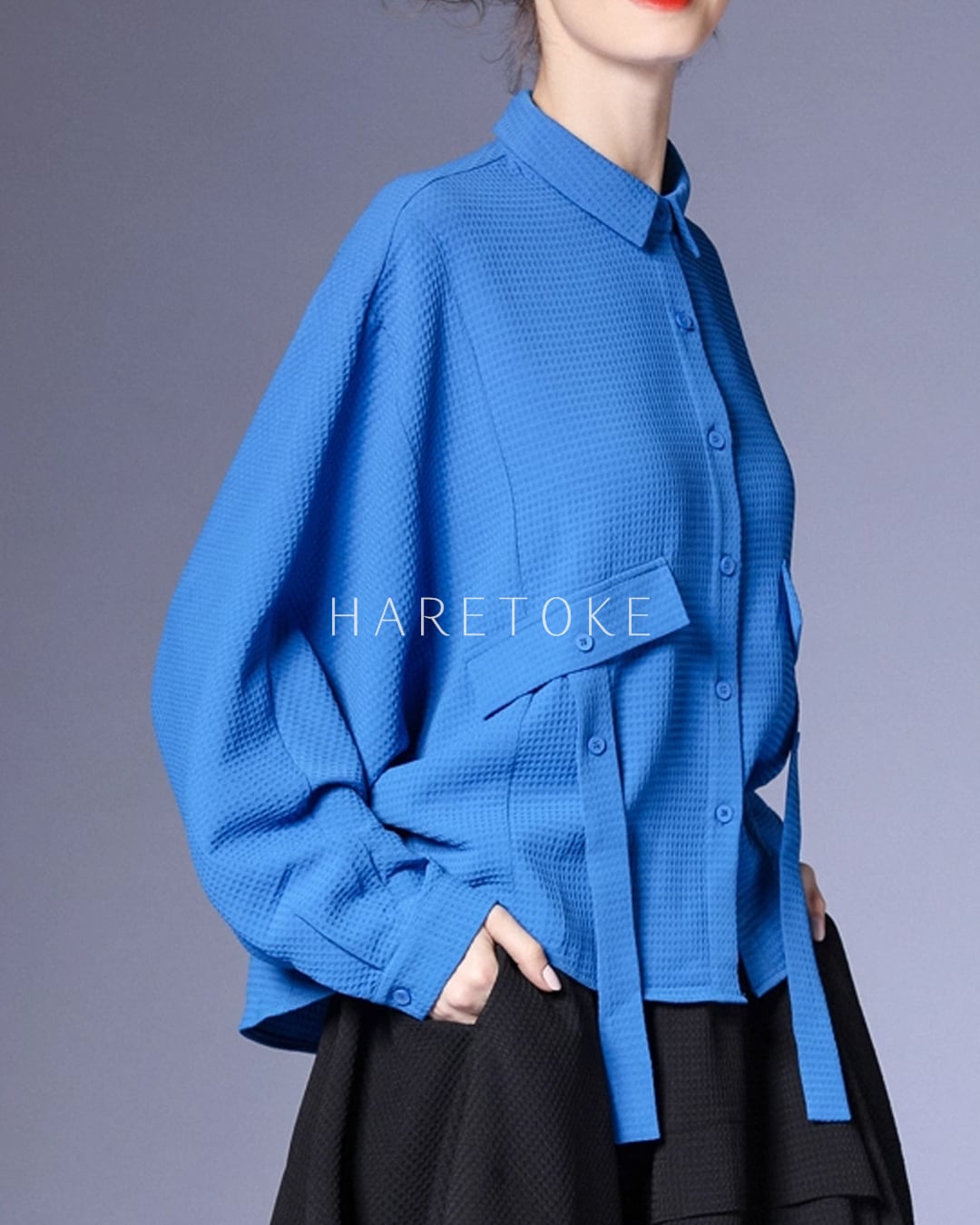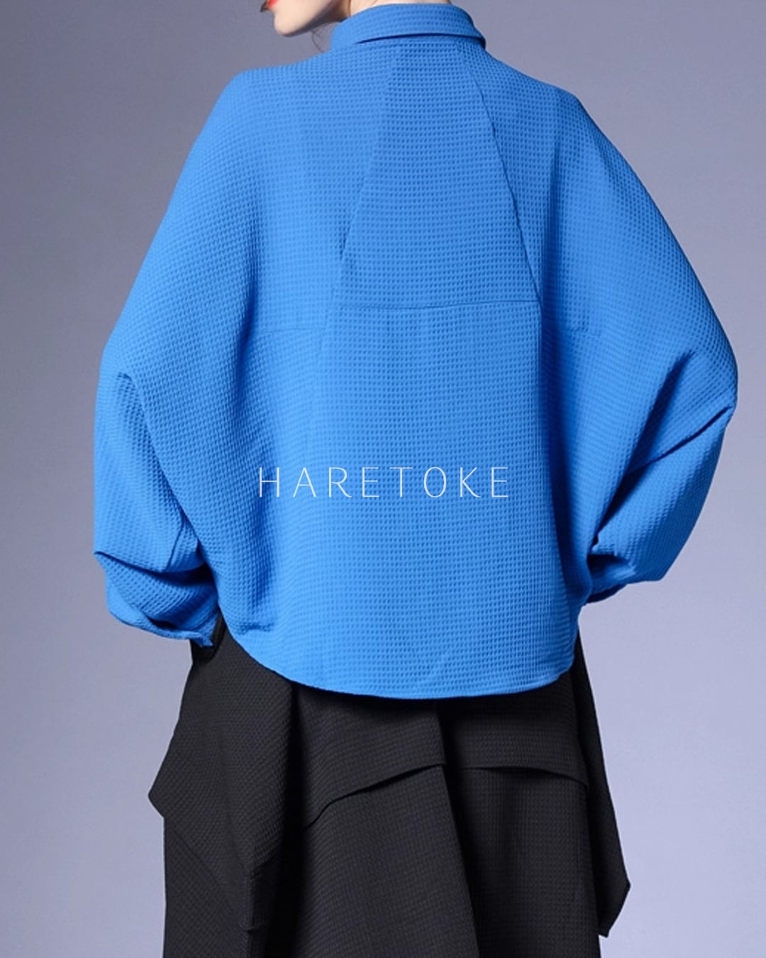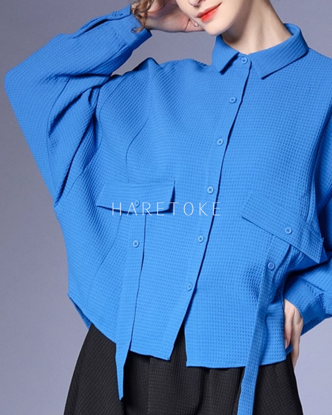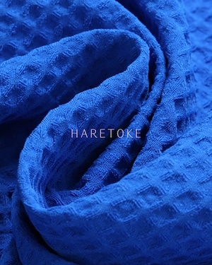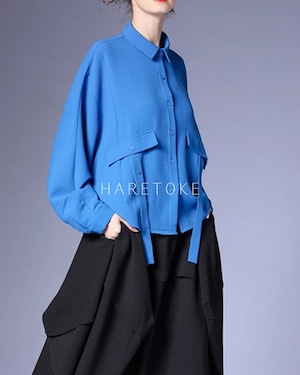 鮮やかなブルーが目を惹くワッフルテクスチャーのシャツ。