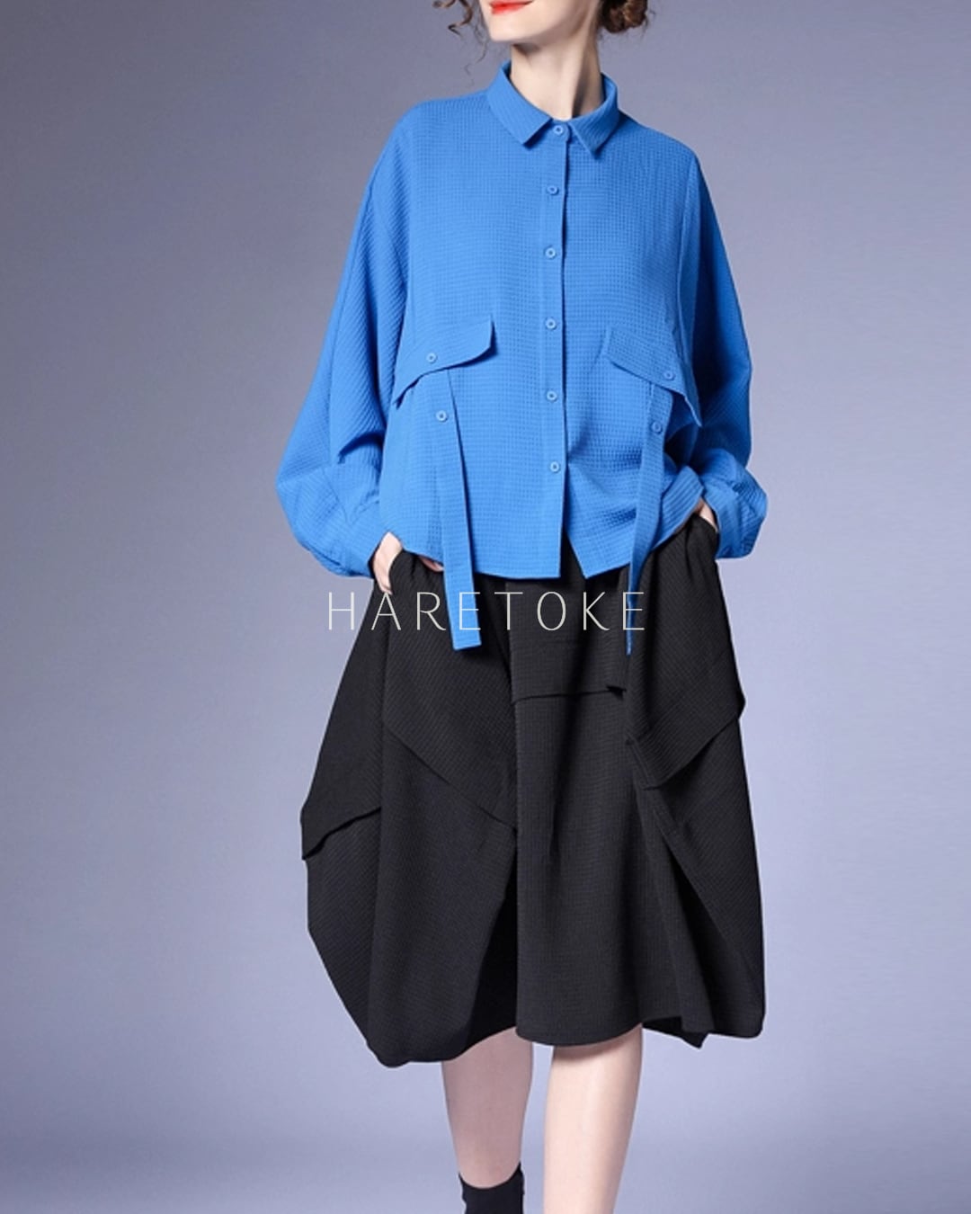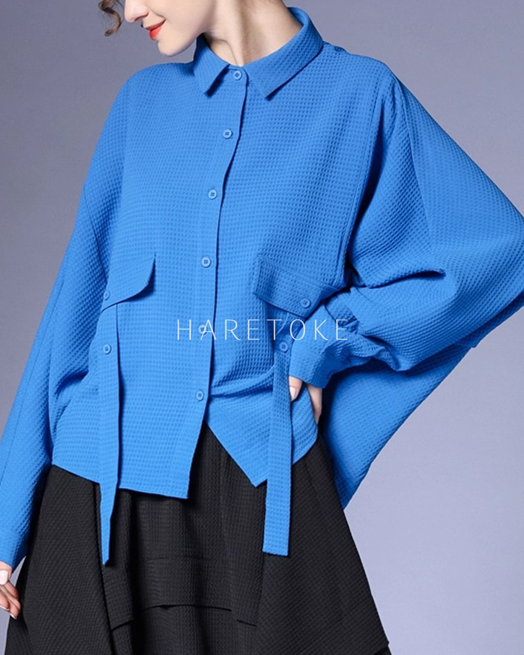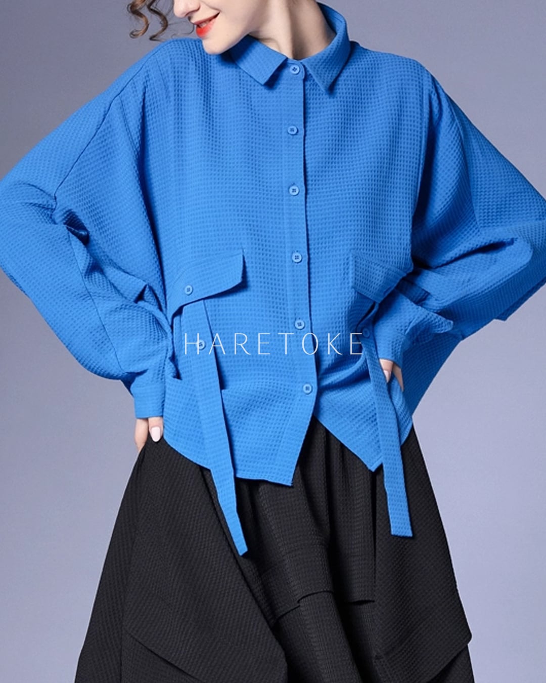 鮮やかなブルーが目を惹くワッフルテクスチャーのシャツ。