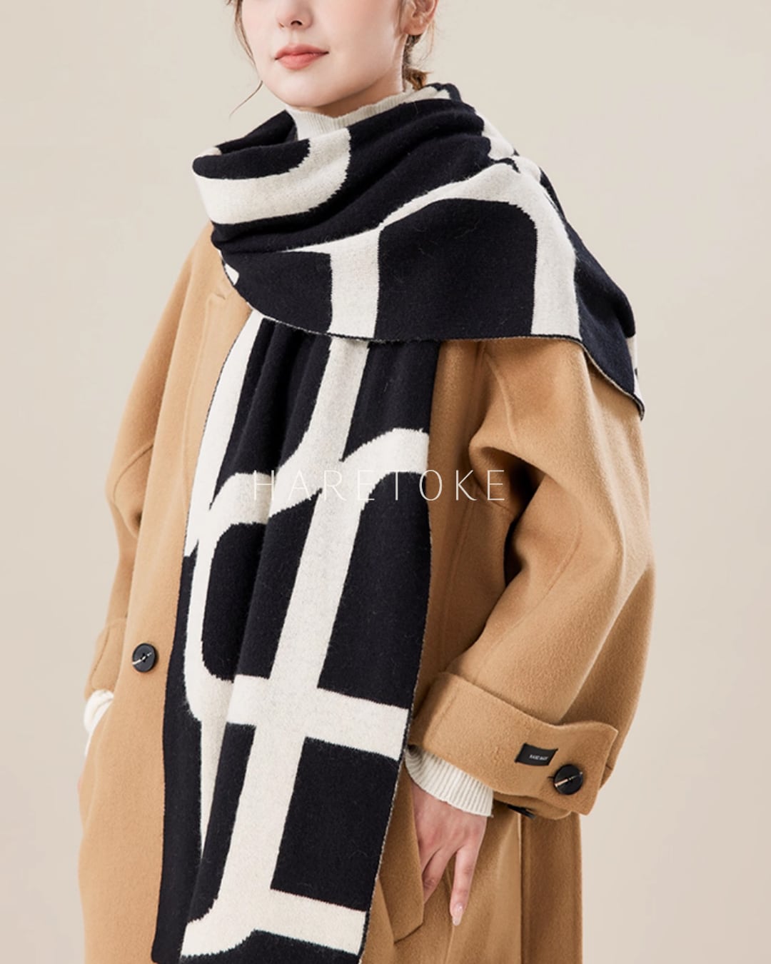 肩まで覆えるワイド幅で、あたたかさとスタイルを両立させた一枚です。