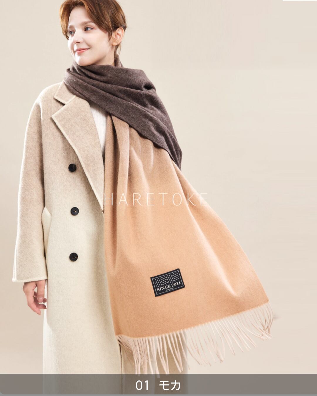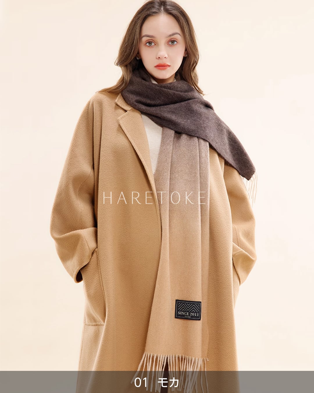 天然の色合いをそのまま活かした無染色グラデーションが、冬の装いに自然な深みを添えます。
