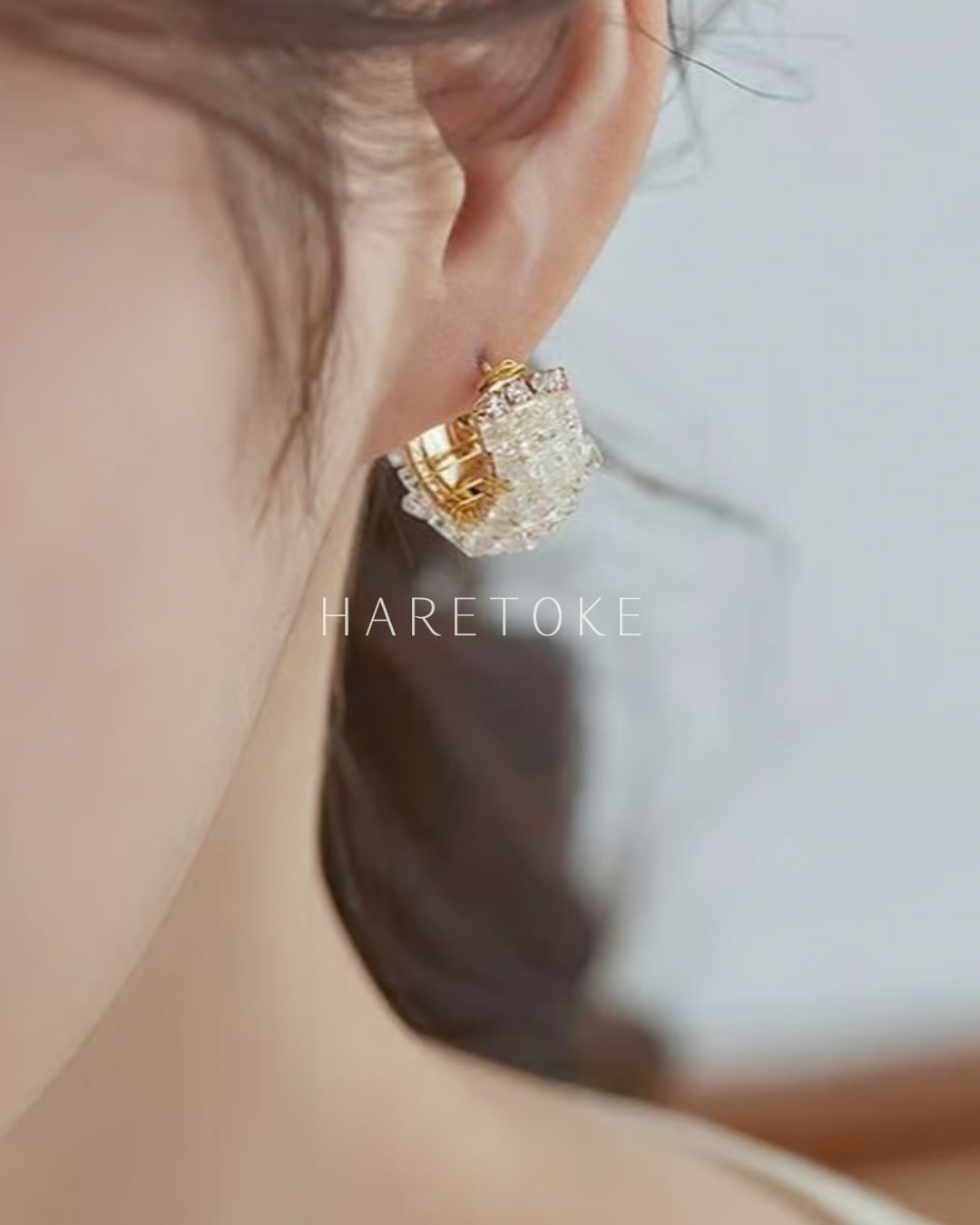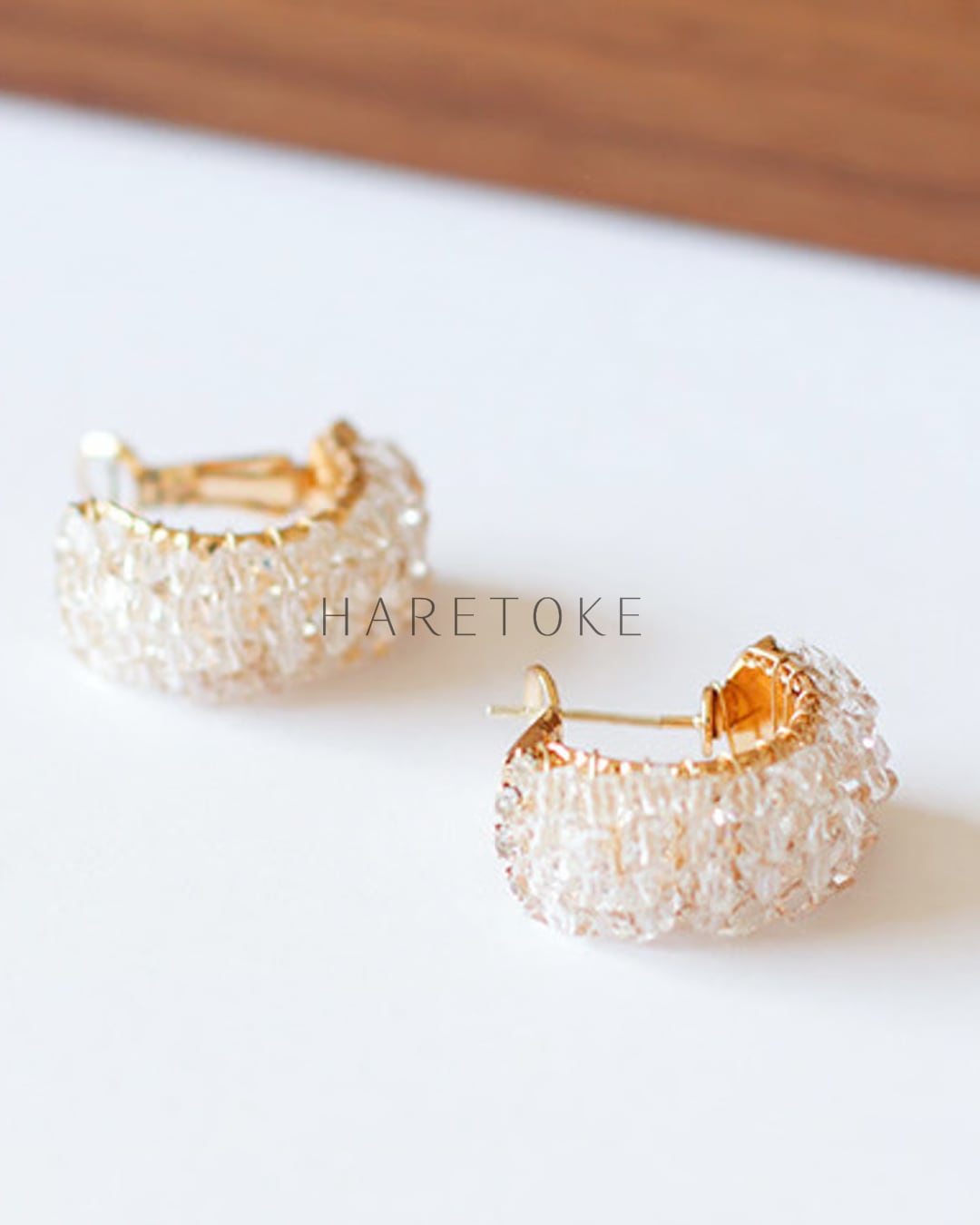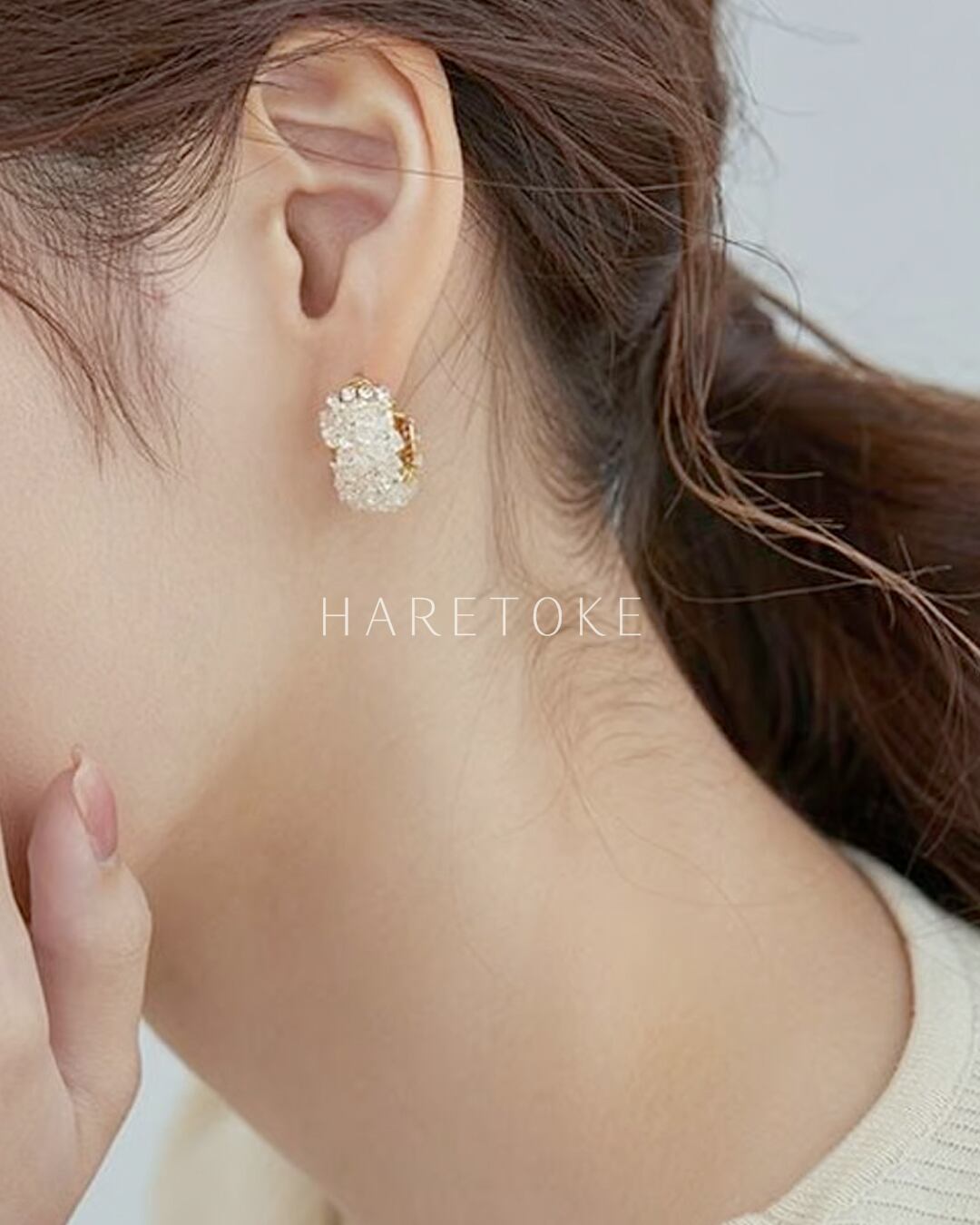 小粒パール調のテクスチャが美しく輝くフープピアス。