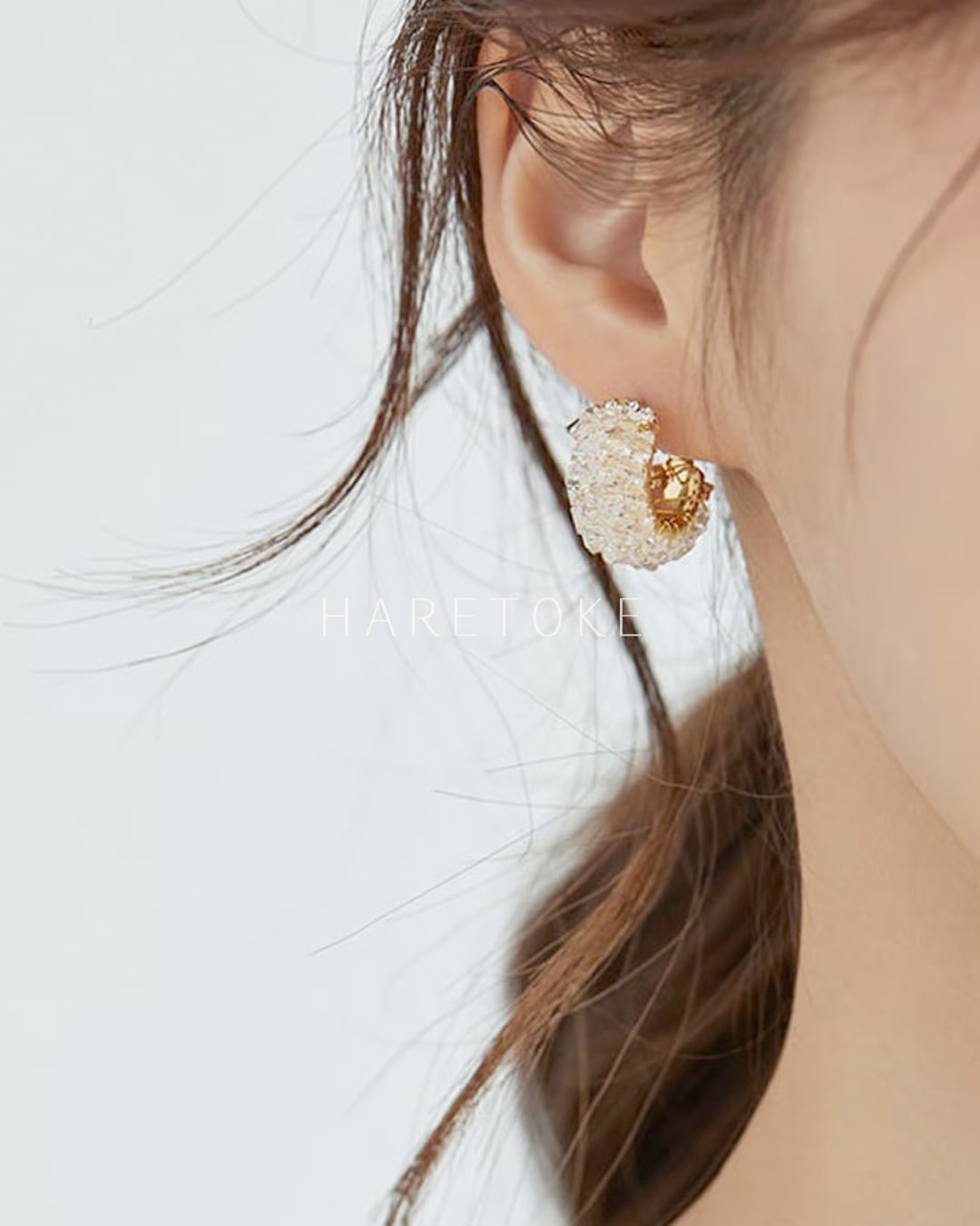 ナチュラルな素材感が、顔まわりにやさしい華やかさを添えます。